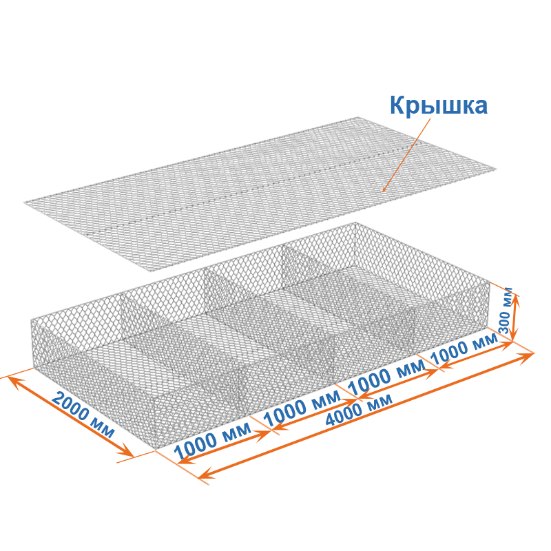 Габион матрац ГСИ-М 4х2х0,3 оцинкованный, Ø проволоки 3,0 мм, размер ячейки 8х10 см