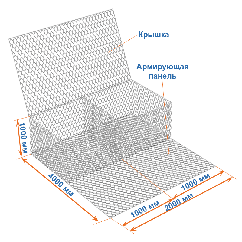 Габион с армопанелью 4x2x1 представляет собой коробчатый габион, состоящий из двух частей: основного короба и армирующей панели. Армопанель – это продолжение основания габиона.